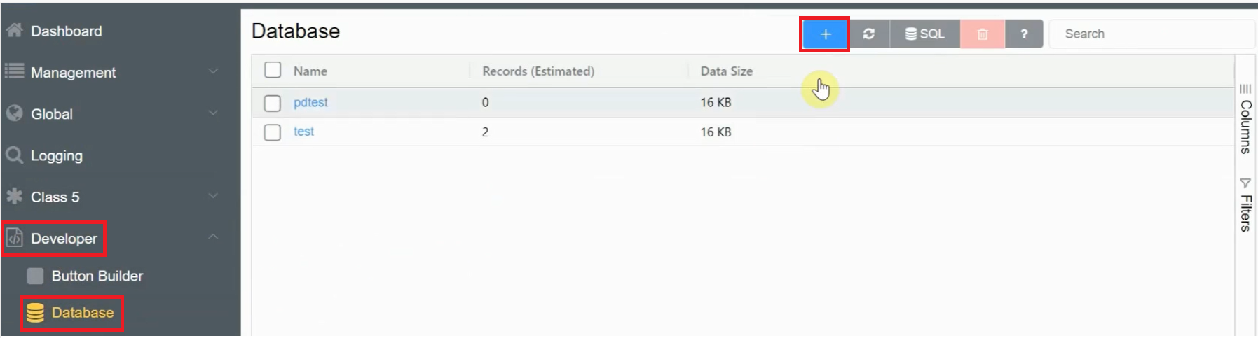 - Go to Developer > Database.